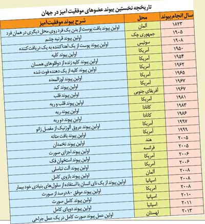 از زمانی که در تاریخ پزشکی عضوی از انسان با موفقیت پیوند زده شد قریب به دو قرن میگذرد. سال 1823 بود که نخستین بار اولین پیوند بافت پوست از یک محل بدن فرد روی محل دیگری با موفقیت در آلمان انجام شد.