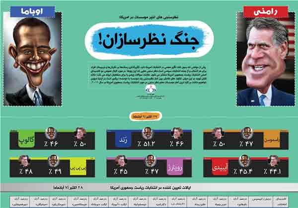 به گزارش نما به نقل از فارس، انتخابات ریاستجمهوری آمریکا قرار است ۶ نوامبر ۲۰۱۲ (۱۶ آبانماه) برگزار شود و نظرسنجیهای روزانه در سراسر آمریکا حاکی از آن است که رقابت بین «باراک اوباما» و «میت رامنی» به قدری شدید و تنگاتنگ است که حدس زدن اینکه چه کسی پیروز این انتخابات خواهد بود، بسیار دشوار است.
