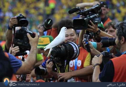 یكی از جالبترین صحنه های قبل از بازی افتتاحیه جام جهانی، نشستن یكی از كبوتران مراسم آغازین بر روی لنز تله یكی از عكاسان بود كه برای مدتی توجه خبرنگاران و عكاسان را به خود جلب كرد.